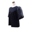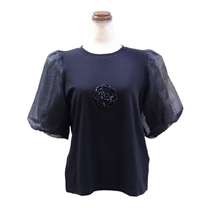 シャドーチェック袖カメリアモチーフトップス(ブラック)