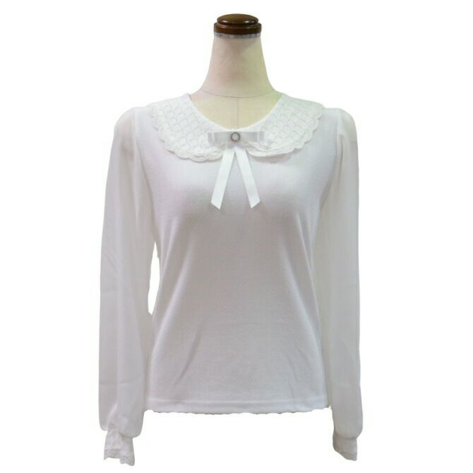 レース襟にテープリボンが上品で華やかさを表現してくれます! きれいめ感のある一枚は、通勤、通学、学校行事やデートなど様々なシーンで活躍しそうです☆ 縦にも横にも伸縮性の有る素材なので、着心地も文句無し♪ 締め付け感の無いゆったりとしたサイズ感が楽ちんです♪ 一枚で着ても可愛く、インナーとしても大活躍間違いなし。