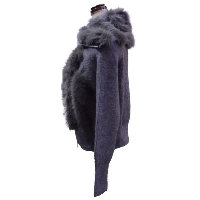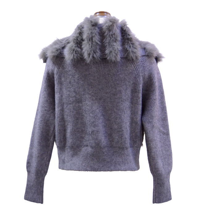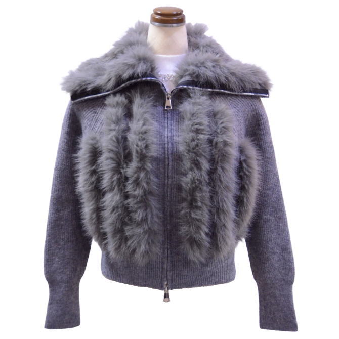 エコファー使いニットブルゾン(グレー)