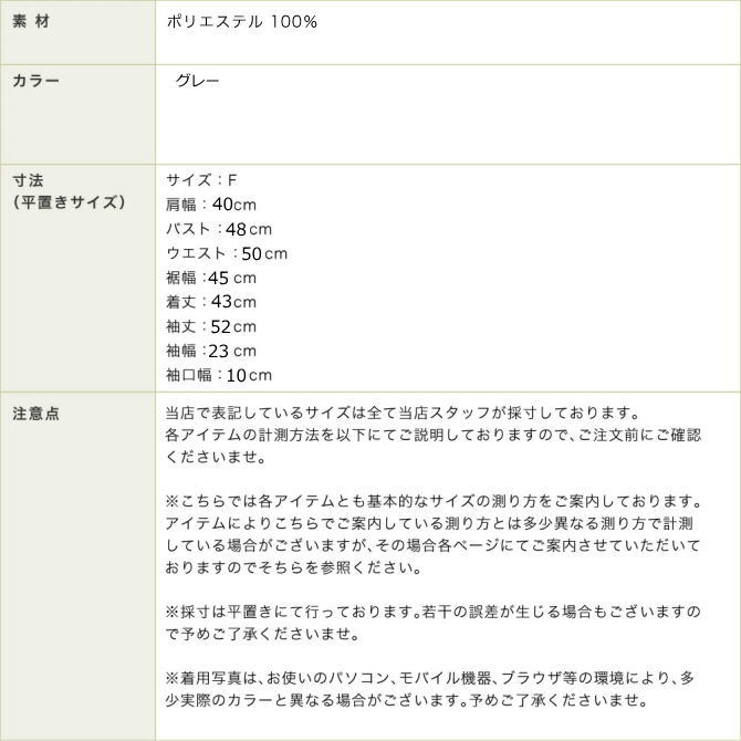 >>当店のサイズ表記について
