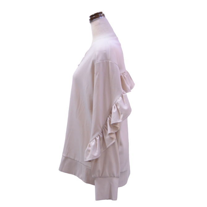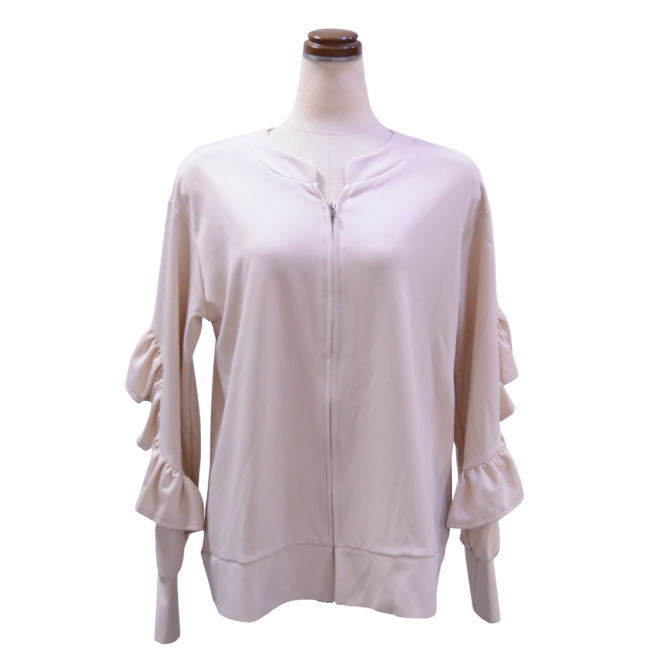 羽織るだけで品よく華やかな印象に仕上がります♪ カジュアル感に加えて上品でエレガントな雰囲気を醸し出しています♪ 大胆なフリル使いが上品なアクセント♪ ポリエステル100%なのでお家でザブザブお洗濯できるのも魅力のひとつ♪ 普段使いからデートやちょっとしたお呼ばれまで活躍してくれそうです♪