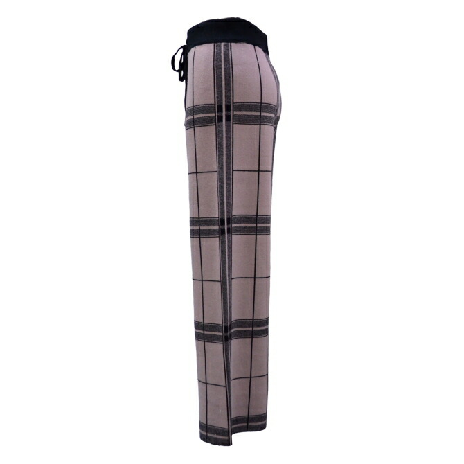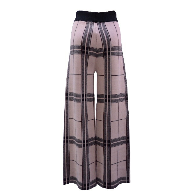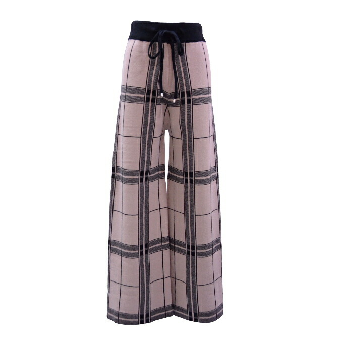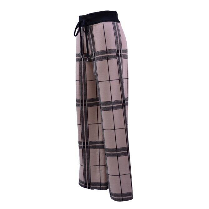 格子柄ニット美脚ワイドパンツ(ベージュ)
