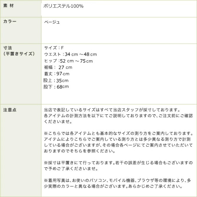 >>当店のサイズ表記について