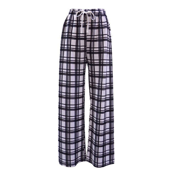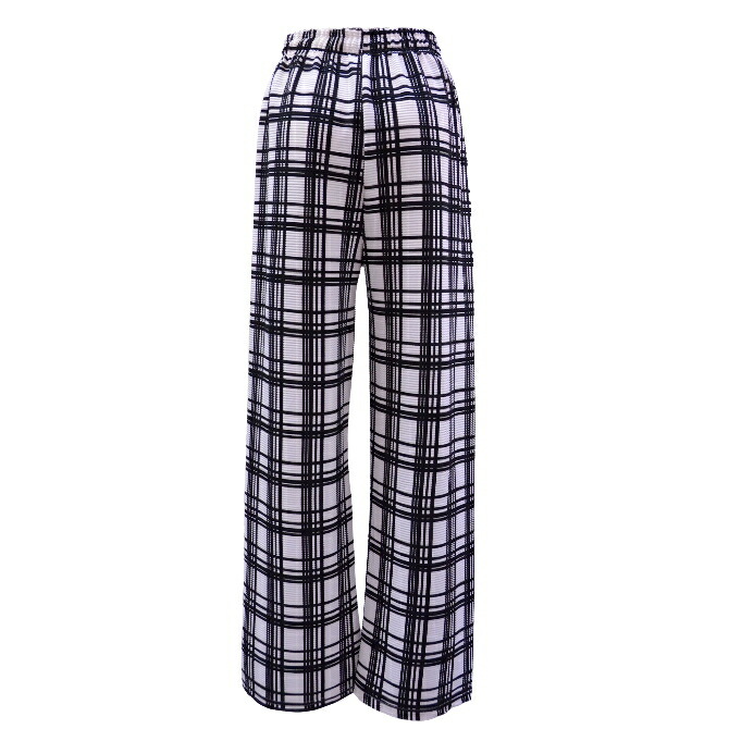 格子柄美脚ワイドパンツ(ホワイト)